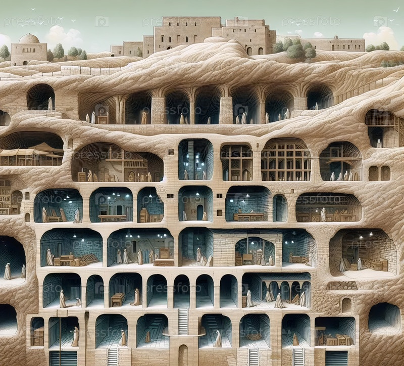 Каппадокийское подземное Солнечные города, AI generated image