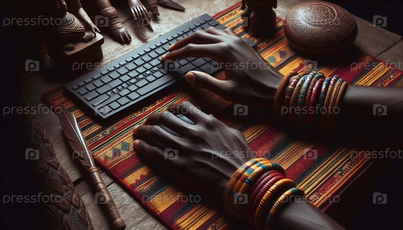 Руки, печатающие на клавиатуре в творческой атмосфере рабочего пространства, Ai generated image