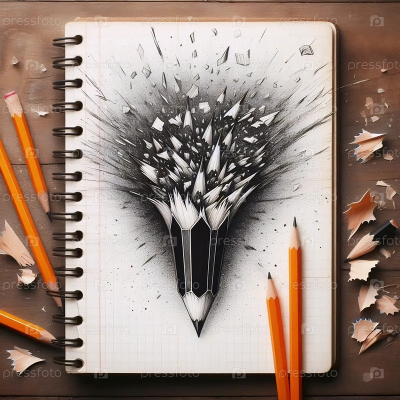 Разбитый карандаш на блокноте, Ai generated image