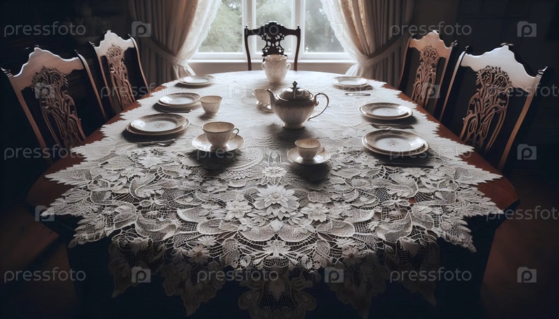 Антикварное круговое столовое полотно, Ai generated image