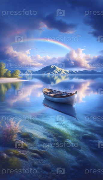 Мир после шторма, библейский морской пейзаж, Ai generated image