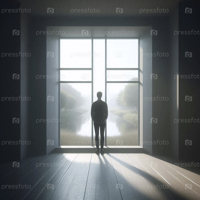 Крестообразное окно с фигурой, глядящей наружу, если смотреть изнутри, Ai создает изображение
