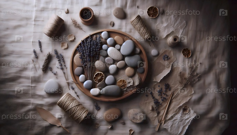 Знаменитый каменный и сушеные цветочные аранжировки, Ai генерирует изображение