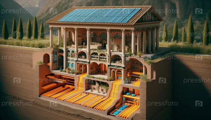 Знаменитая римская система отопления Гипокауста, AI generated image
