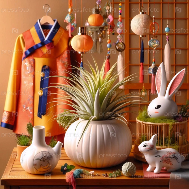 Интерьер в стиле бохо, стеклянные террариумы с воздушными растениями Tillandsia и увлажнителем, Ai generated image