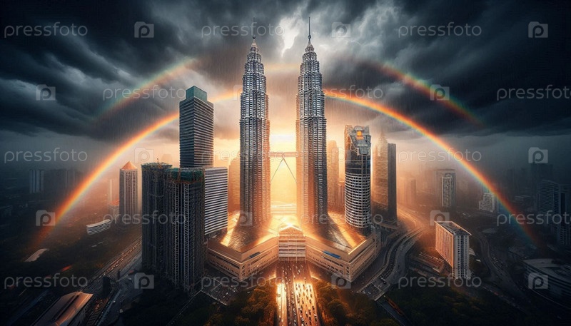 Башни Петронаса с муссонными облаками, Ai generated image