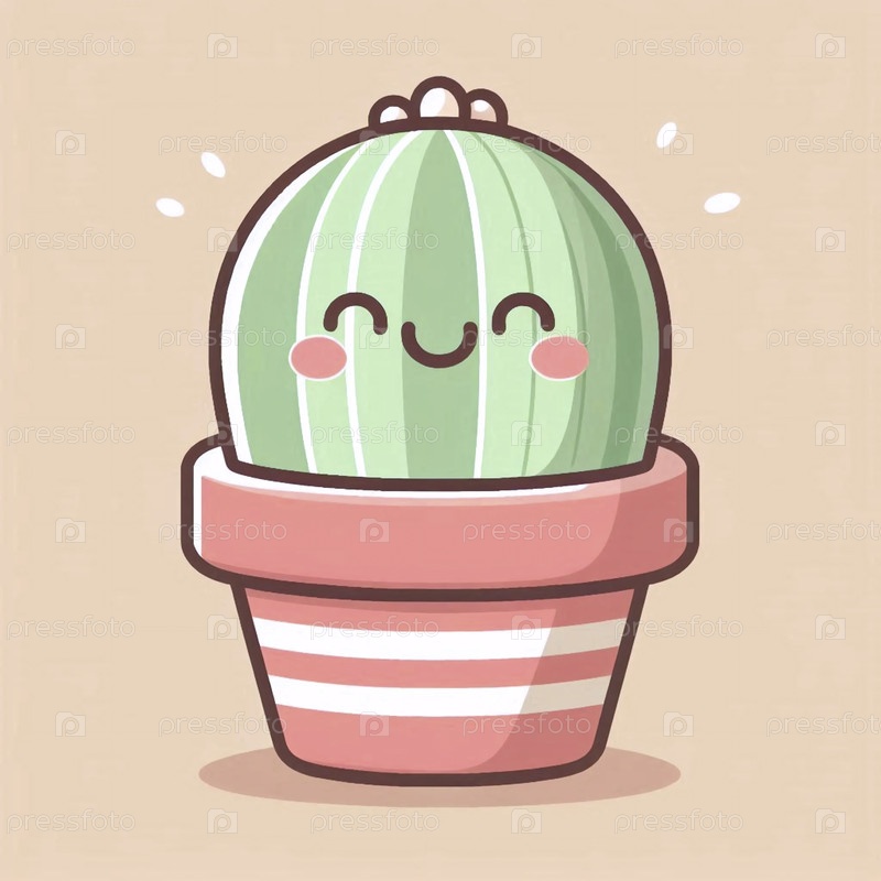 Счастливый кактус в крошечном горшке, Ai generated image