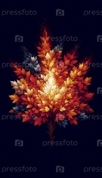 Горящий куст изображен осенними листьями, Ai generated image