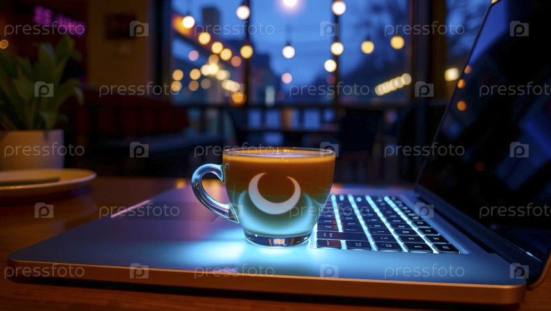 Искусство, ноутбук с чашкой кофе, Ai generated image Lat