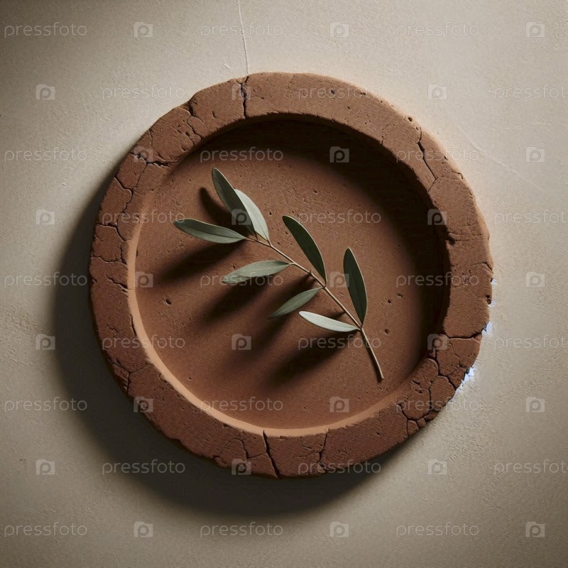 Круг оливковой ветви на терракотовой глине, Ai generated image