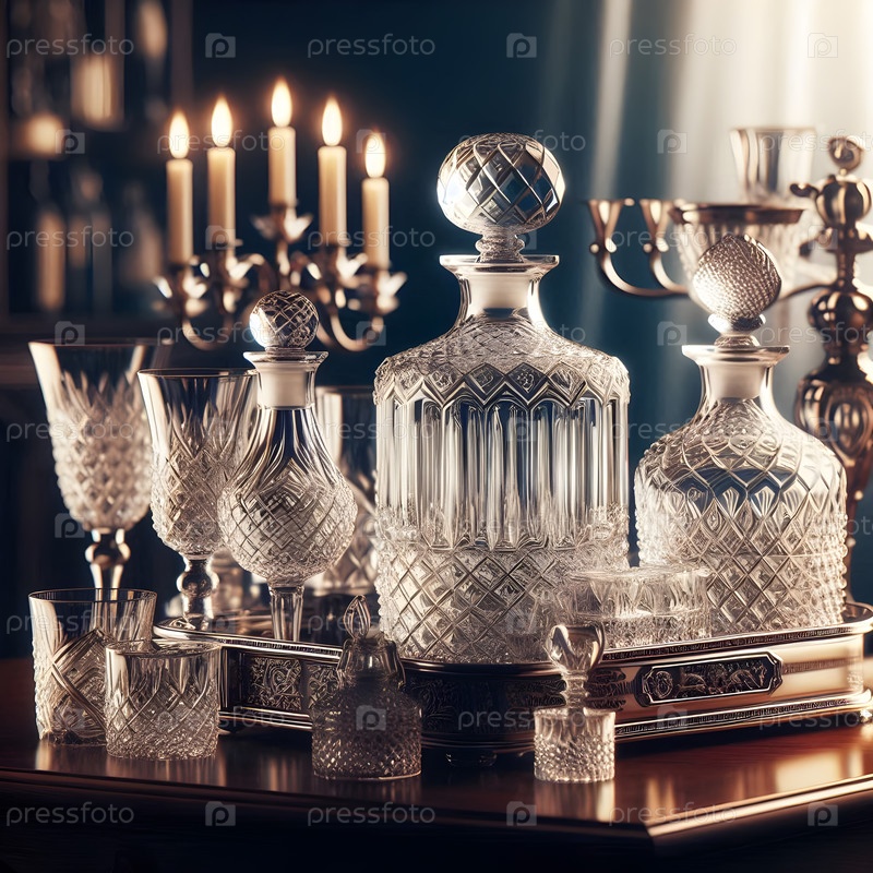 Комплект кристаллических декантеров с очками, изображение, созданное AI