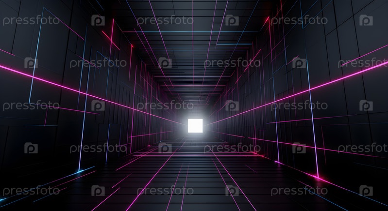 Футуристический тоннель с неонными сетчатыми линиями, изображение создано с помощью Ai