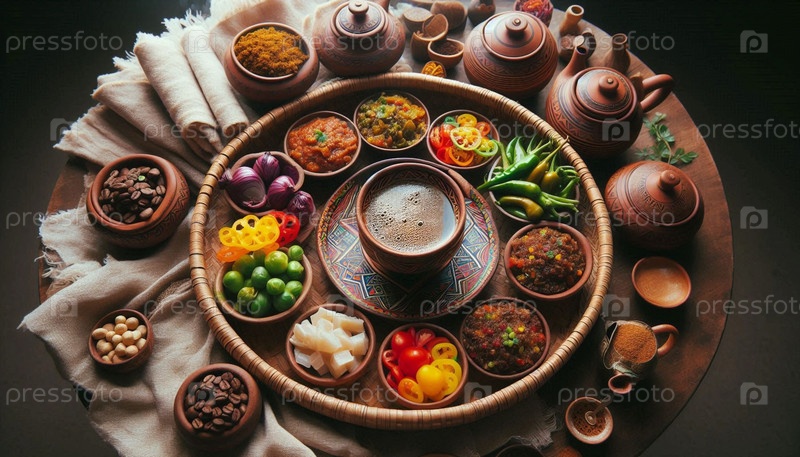 Эфиопский праздник Инжера на основе растений, AI generated image
