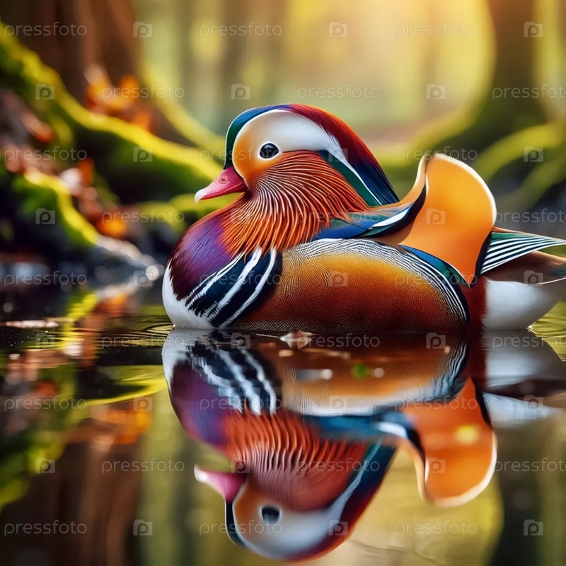 Мандаринская утка в воде, Ai generated image