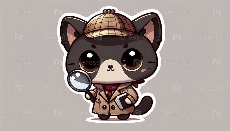Милый стикер кавайского детектива чиби-кошки, Ai generated image