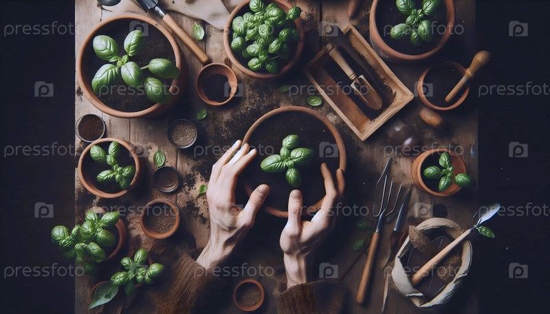 Руки сажают травы, Ai generated image