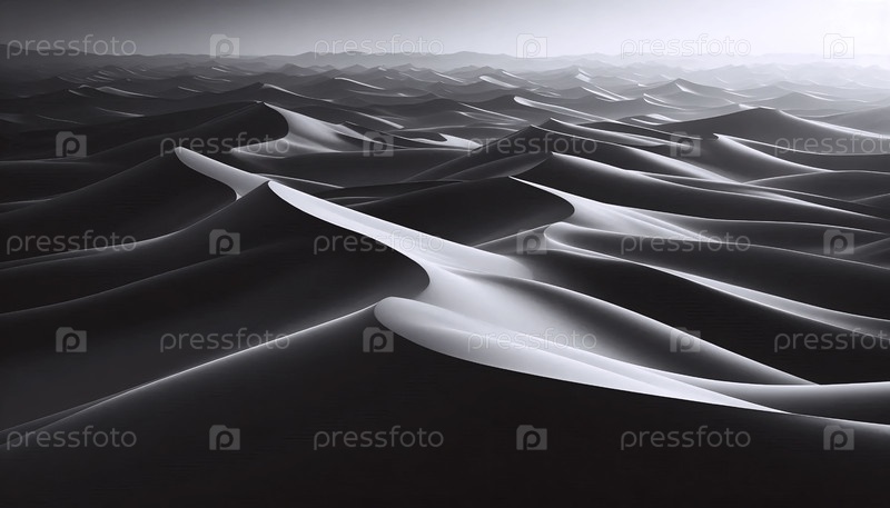 Эфирный пейзаж песчаных дюн на рассвете, где ветер создал идеальные волнистые узоры, Ai генерирует изображение