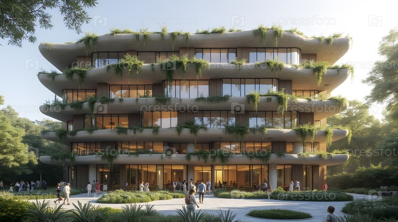 Фасады зданий с фотоэлектрическими весами, изображение, созданное ИИ