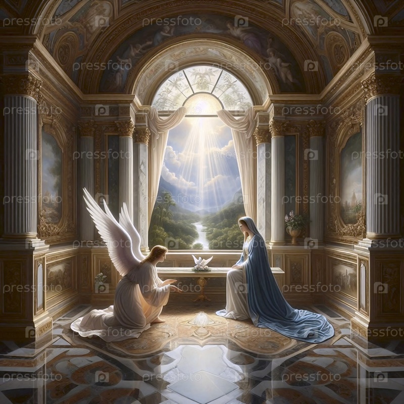 Благовещение в интерьере эпохи Возрождения, Ai generated image