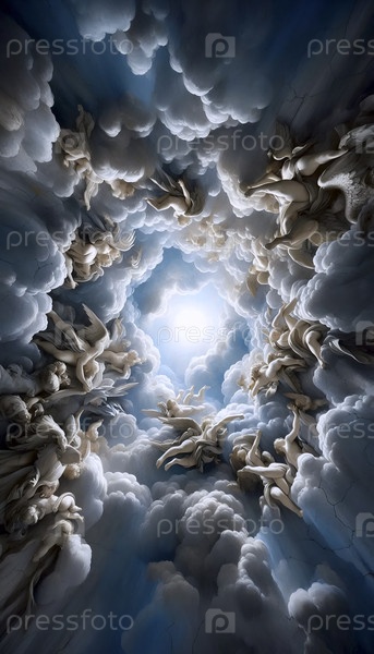 Детали фрески на потолке в стиле барокко с облаками и ангелами, Ай создала изображение