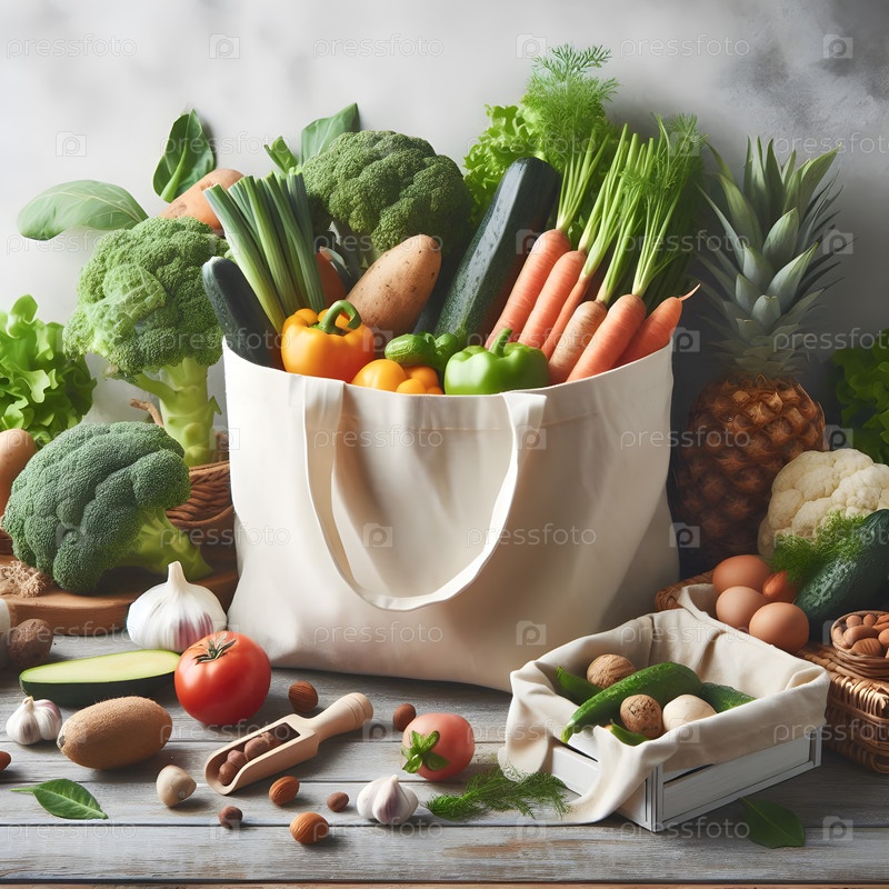 Сумка с органическими хлопковыми продуктами, изображение создано AI