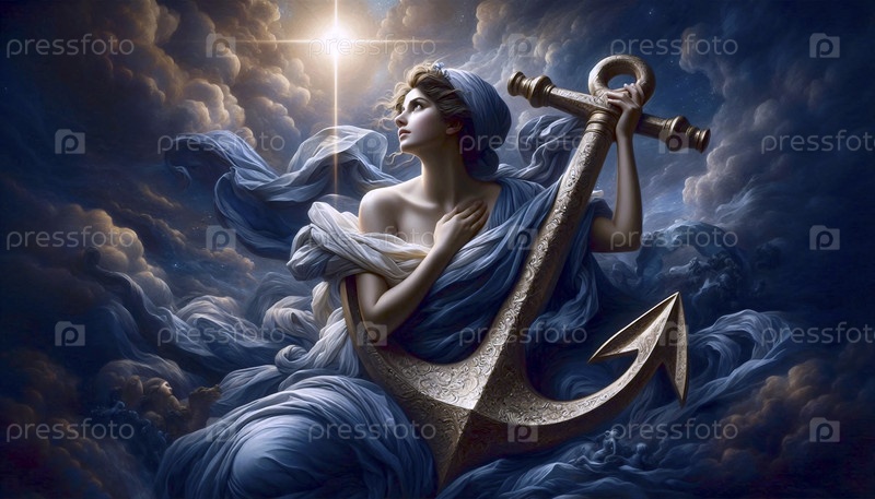 Аллегория Надежды с якорем, масло на холсте, Ai generated image