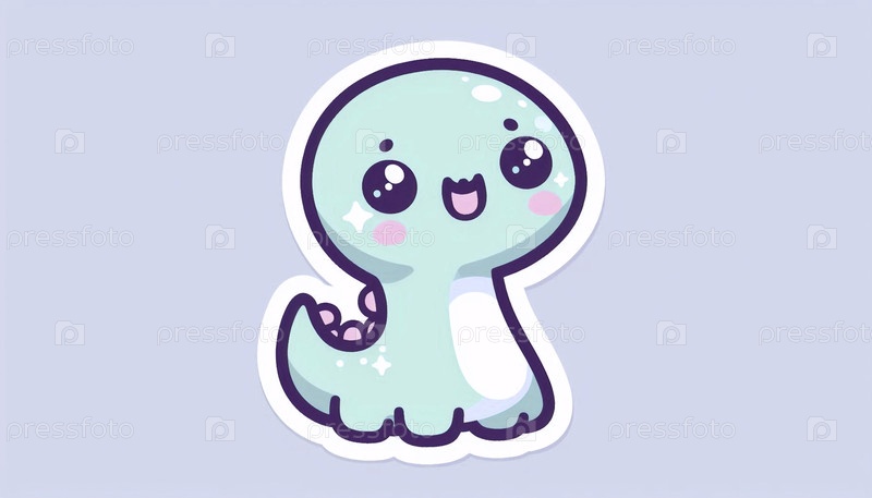 Милый стикер кавайи дружелюбного динозавра, Ai generated image