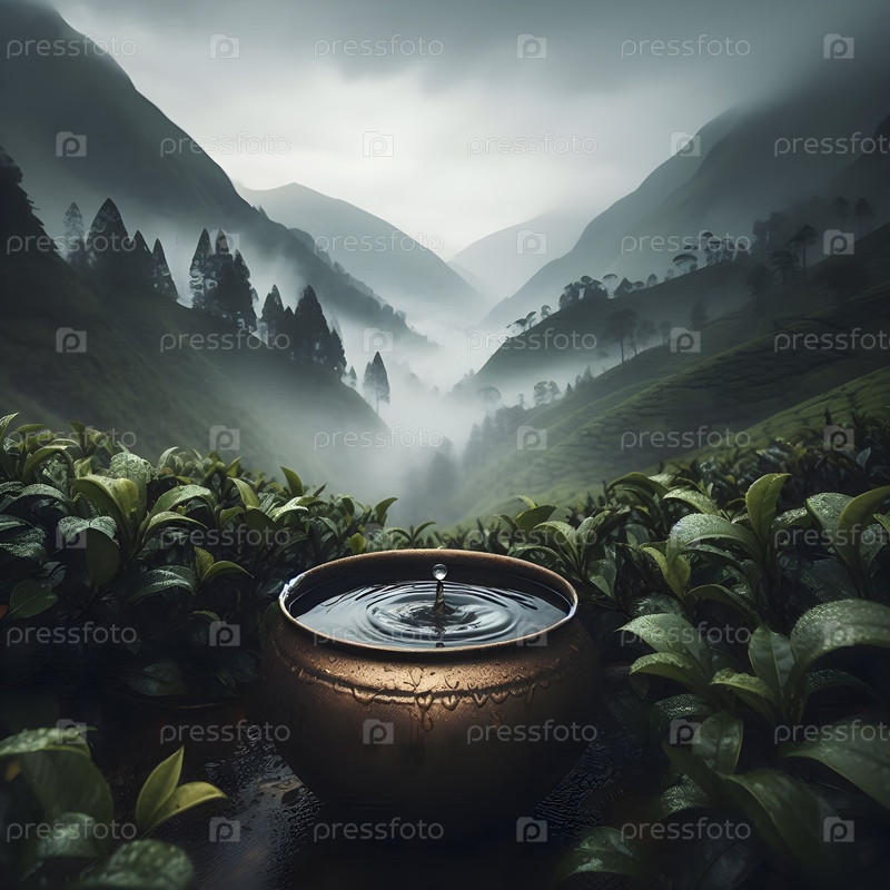 Дождевая вода, собранная в бронзовом сосуде, Ai created image