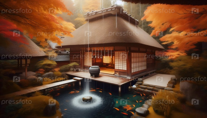 Японская ферма Minka Farmhouse, ИИ сгенерированное изображение