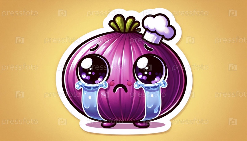 Милый стикер кавайи с плачущим луком, Ai generated image