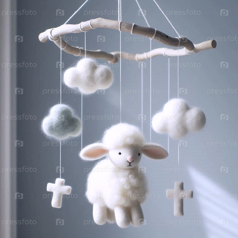 Мобильный телефон с облаками, ягненком и крестными формами в пастельном фильтре Ai создал изображение