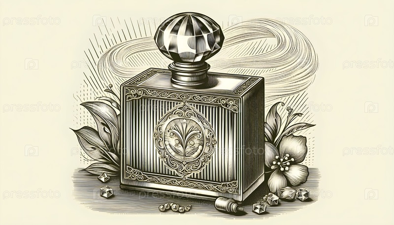 Бутылка парфюмерии с кристаллической пробкой, изображение создано AI