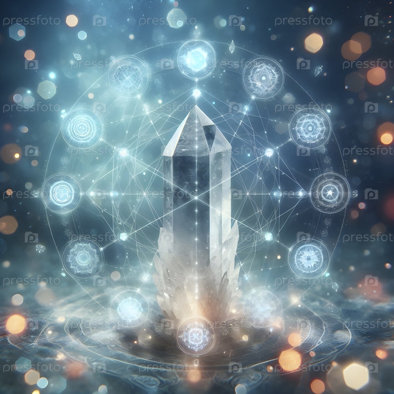 Кварцевая кристаллическая сетка, наложенная на точки чакры, Ai created image