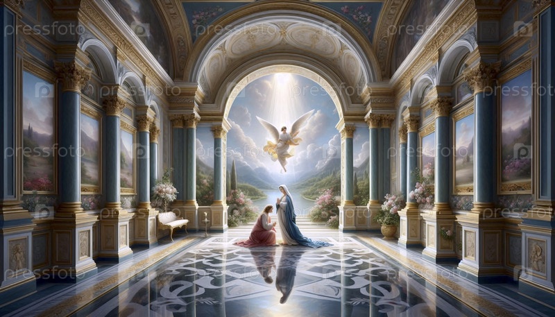 Благовещение в интерьере эпохи Возрождения, Ai generated image