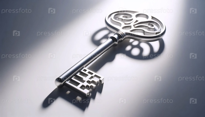 Один сложный ключ на белом фоне, его запутанные разрезы и зубы с абсолютной ясностью, Ай создал изображение