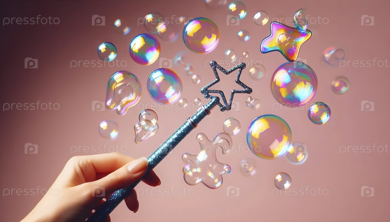 Волшебная палочка, которая создает безвредные пузыри в разных формах, Ai created image
