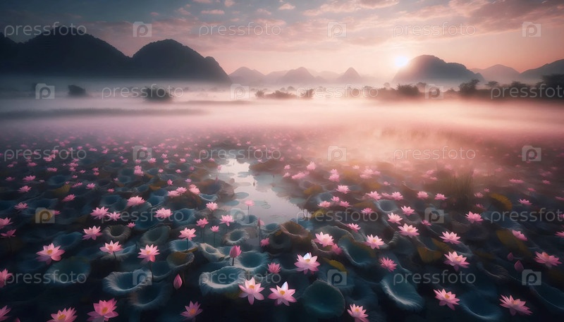 Поле речного лотоса, Ai generated image