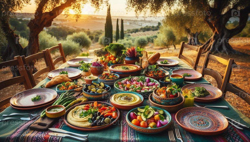 Ближневосточный веганский завтрак, изображение создано искусственным интеллектом