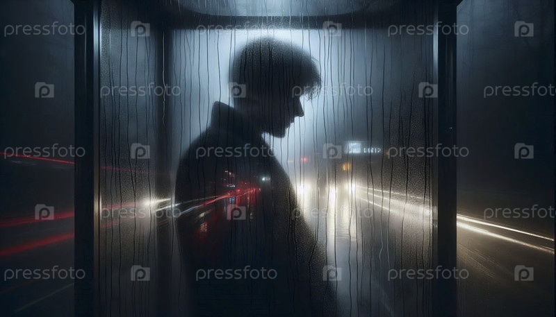 Потрясающий портрет человека, увиденного только как отражение в дождливом окне на одинокой автобусной остановке ночью, Ай создал изображение