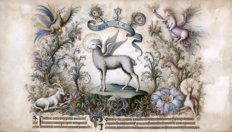 Средневековый рисунок в стиле зоопарка, изображающий Ягненка Божьего (Ai generated image)