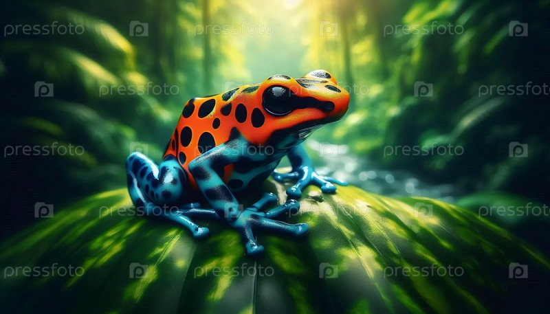 A vibrant poison dart frog, Ai generated image Вибрирующая ядовитая стрелка лягушки, созданная изображением