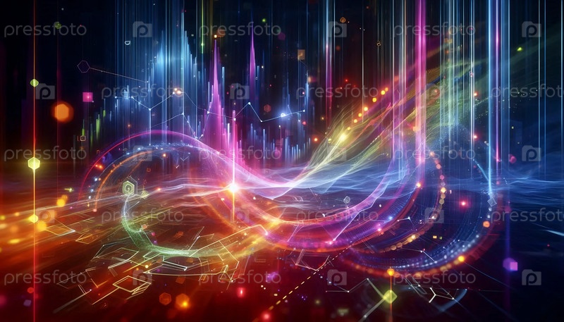 Футуристические 3D-графики с неоновыми цветами, созданное ИИ изображение