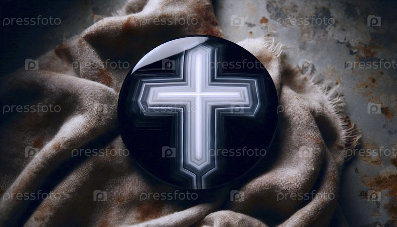 Черный кусок агаты с белым естественным крестообразованием, Ai generated image