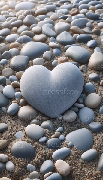 Камень в форме сердца на ложе речных камней, Ай создал изображение