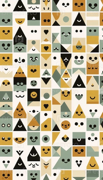 Геометрический шаблон кавайи с милыми формами лиц, Ai generated image
