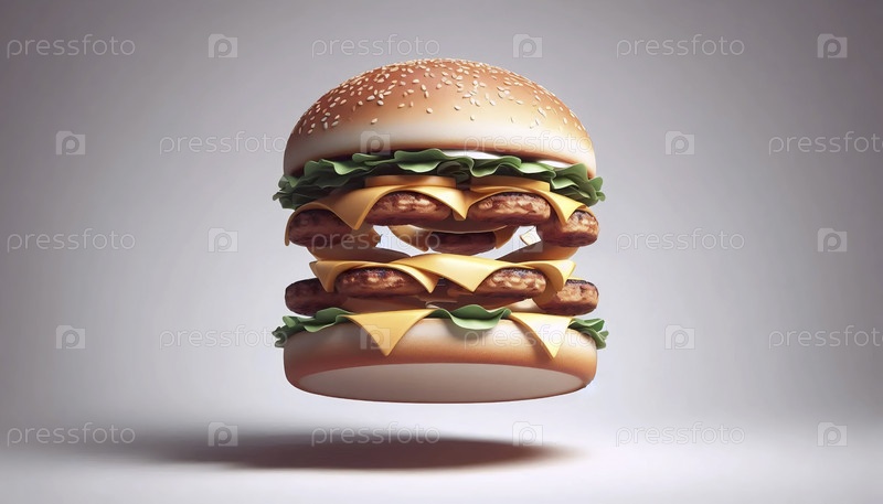 Пищевое искусство оптической иллюзии, показывающее невозможную структуру бургера с плавающими элементами, Ai created image