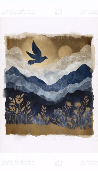 Дикая вера в художественную печать гор и летающего голубя, Ай создал изображение
