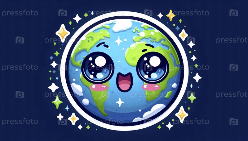 Милый стикер кавайи о удивительной планете Земля, Ai generated image