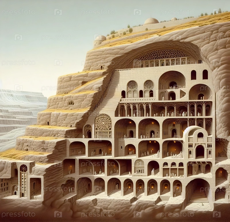 Каппадокийское подземное Солнечные города, AI generated image