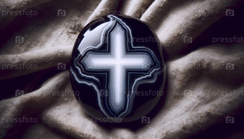Черный кусок агаты с белым естественным крестообразованием, Ai generated image